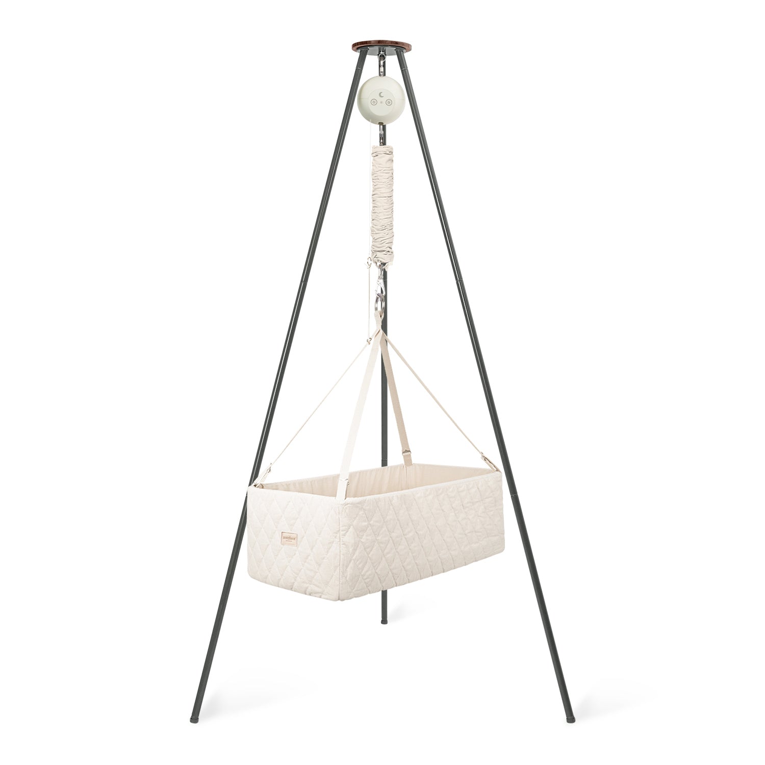 Featuring clean and modern Scandinavian styling, the cradle has been created with sleep experts in Denmark to offer a safe and calming sleeping habitat for your little one. It can be rocked at your chosen speed and for your chosen length of time thanks to one of our quiet and easy to operate motors. You have the choice between one of our app-controlled cradle bouncers - the Motor Connect Basic or the Motor Connect Premium. Attach both of these to our sturdy Scandinavian-designed tripod stand and you’re ready for any part of your home to be instantly turned into a cosy sleep zone.