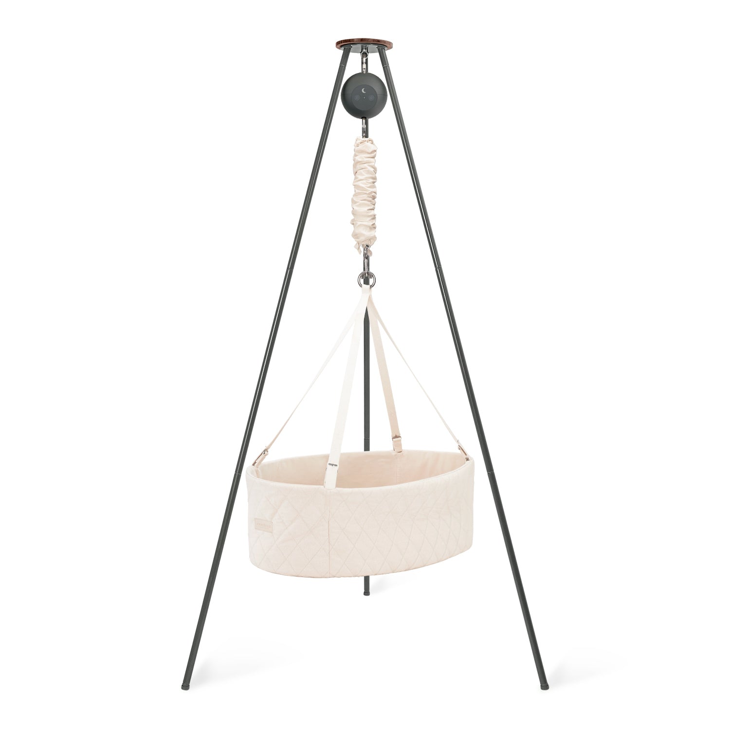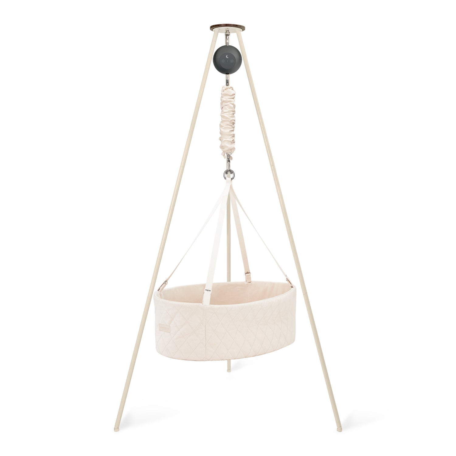 Create a peaceful sleep space for your baby with our cozy oval cradle, featuring a flat base for extra comfort and gentle rocking from our motor. Paired with a sturdy, Scandinavian-style tripod stand, this setup brings soothing relaxation and looks effortlessly stylish in you home.